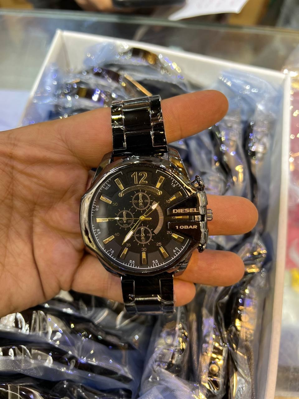ساعت مردانه دیزل مدل ۲۹۸۳ بند فلزی طلایی صفحه مشکیناموجود