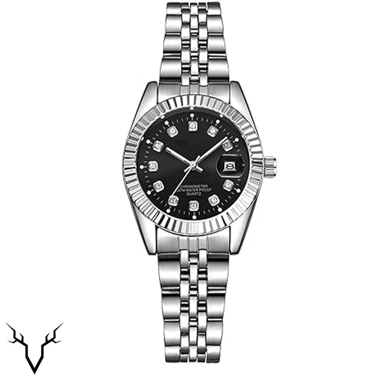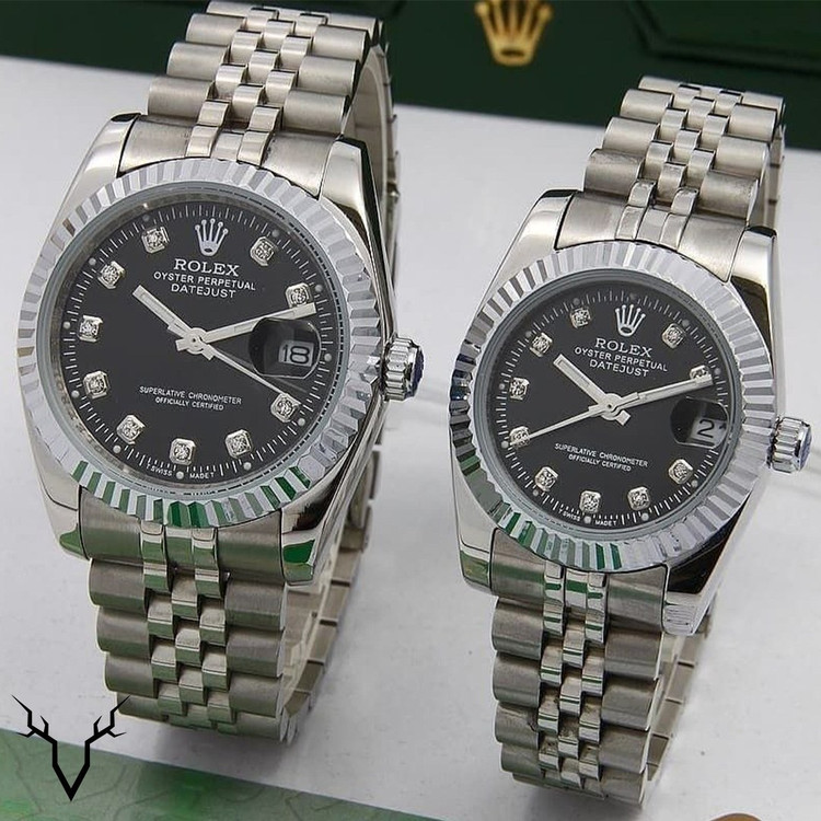 ساعت رولکس دیت جاست نقره ای صفحه مشکی - ست زنانه - مردانه