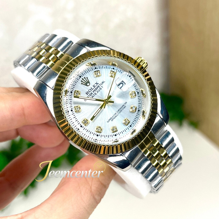 ساعت رولکس مردانه دیت جاست کپی با الهام از طراحی ماندگار مدل محبوب Rolex Datejust از برند لوکس Rolex ساخته شده است. این مدل یکی از کلاسیکترین و پرفروشترین طراحیهای ساعت در جهان محسوب میشود که به دلیل ظاهر شیک، قاب شیاردار (Fluted Bezel) و بند ژوبیلی، جلوهای کاملاً رسمی و لوکس دارد.