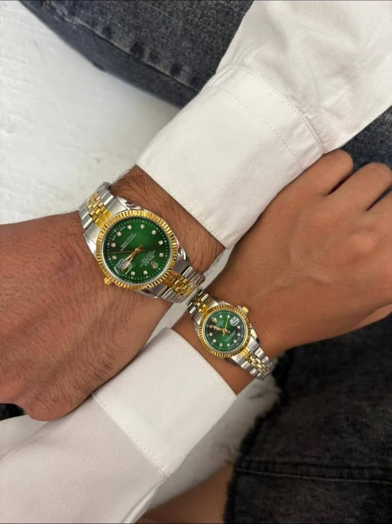 ساعت رولکس دیت جاست (کپی با کیفیت)_ کد ۱۴۴۸ - مردانه / صفحه سبز دور طلایی