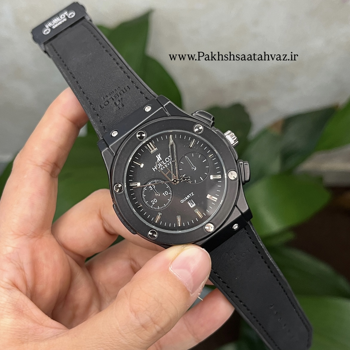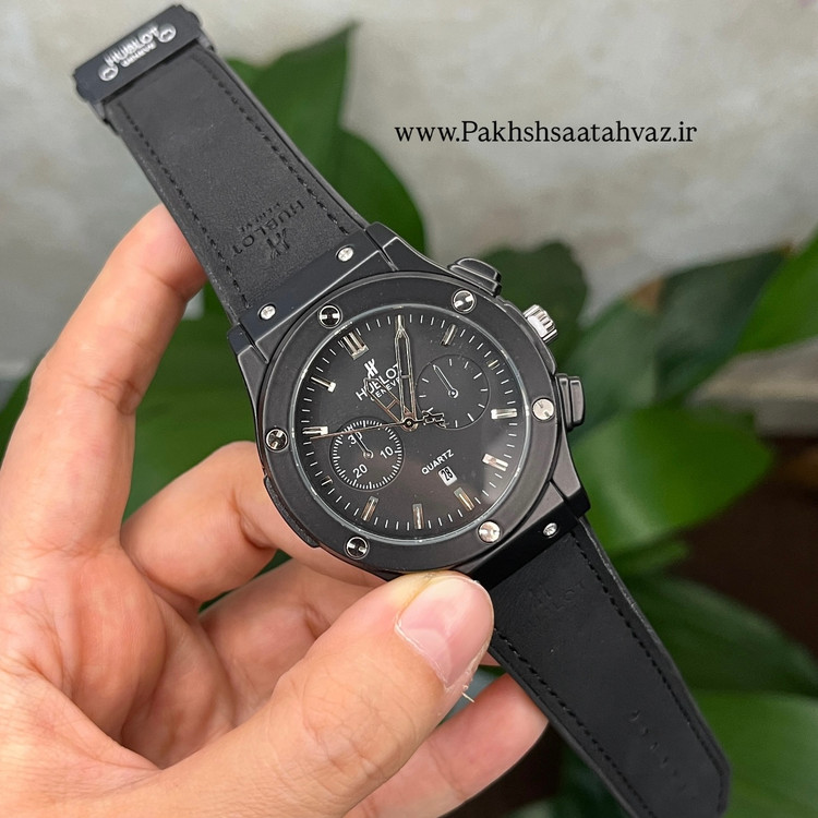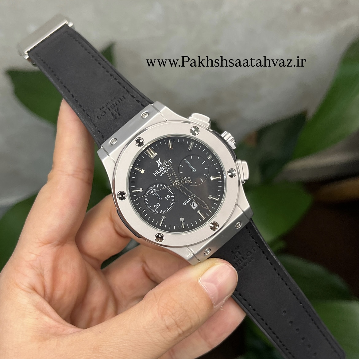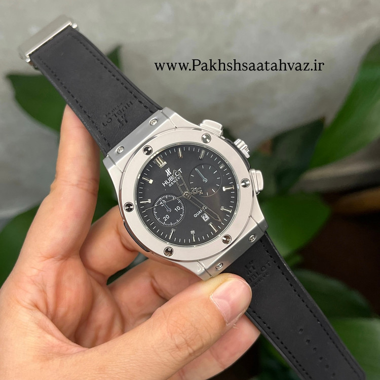 ساعت مچی طرح هابلوت مردانه طرح سه موتوره سیلور مشکی با بند لاستیکی