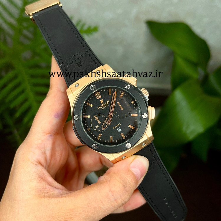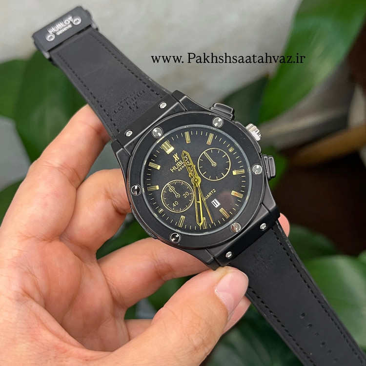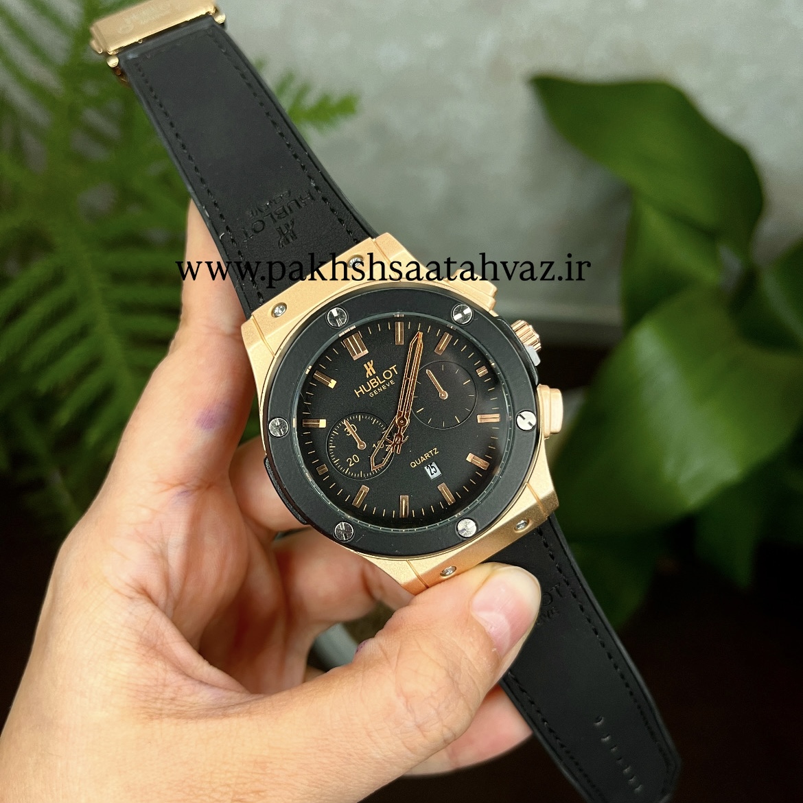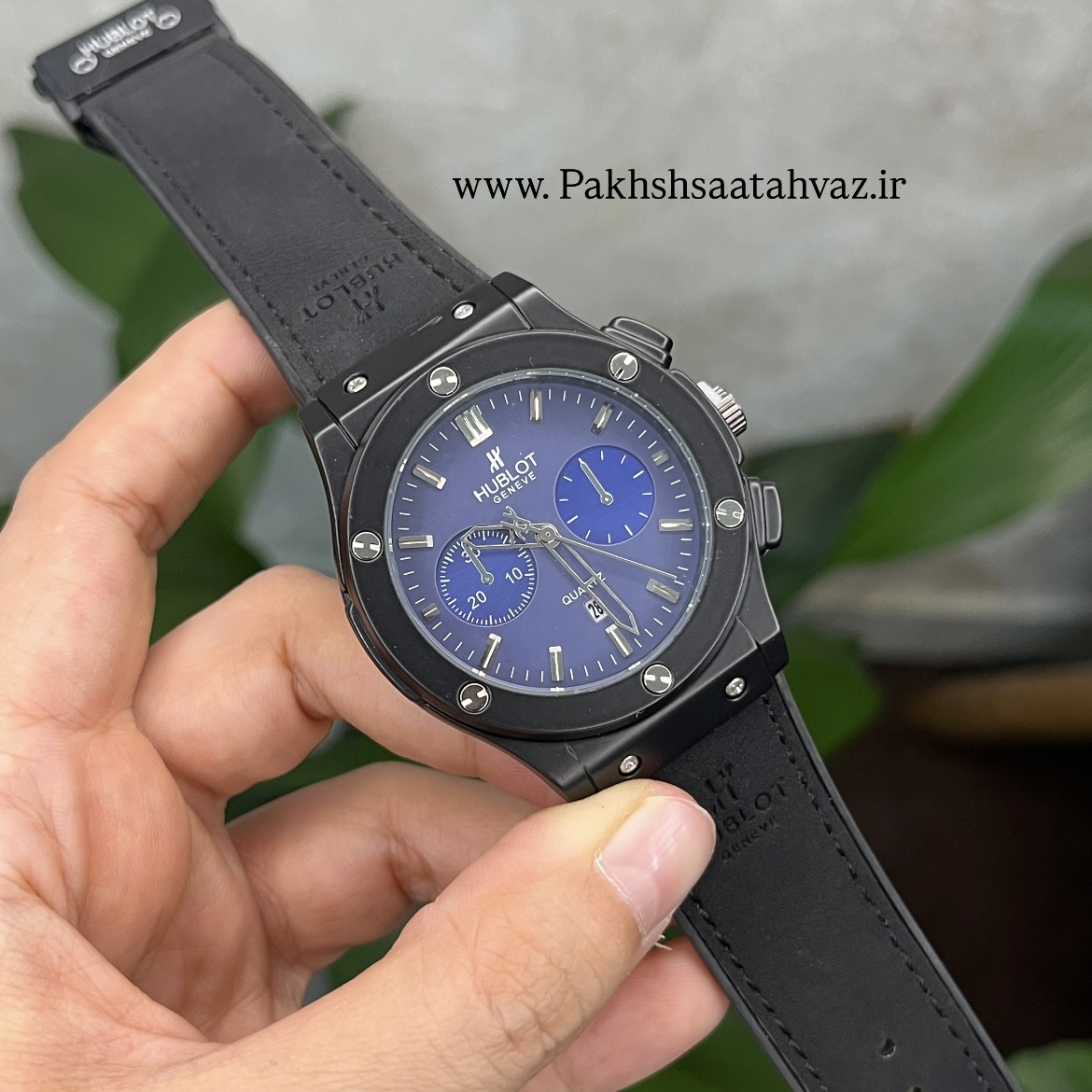 ساعت مچی طرح هابلوت مردانه طرح سه موتوره سیلور مشکی با بند لاستیکی