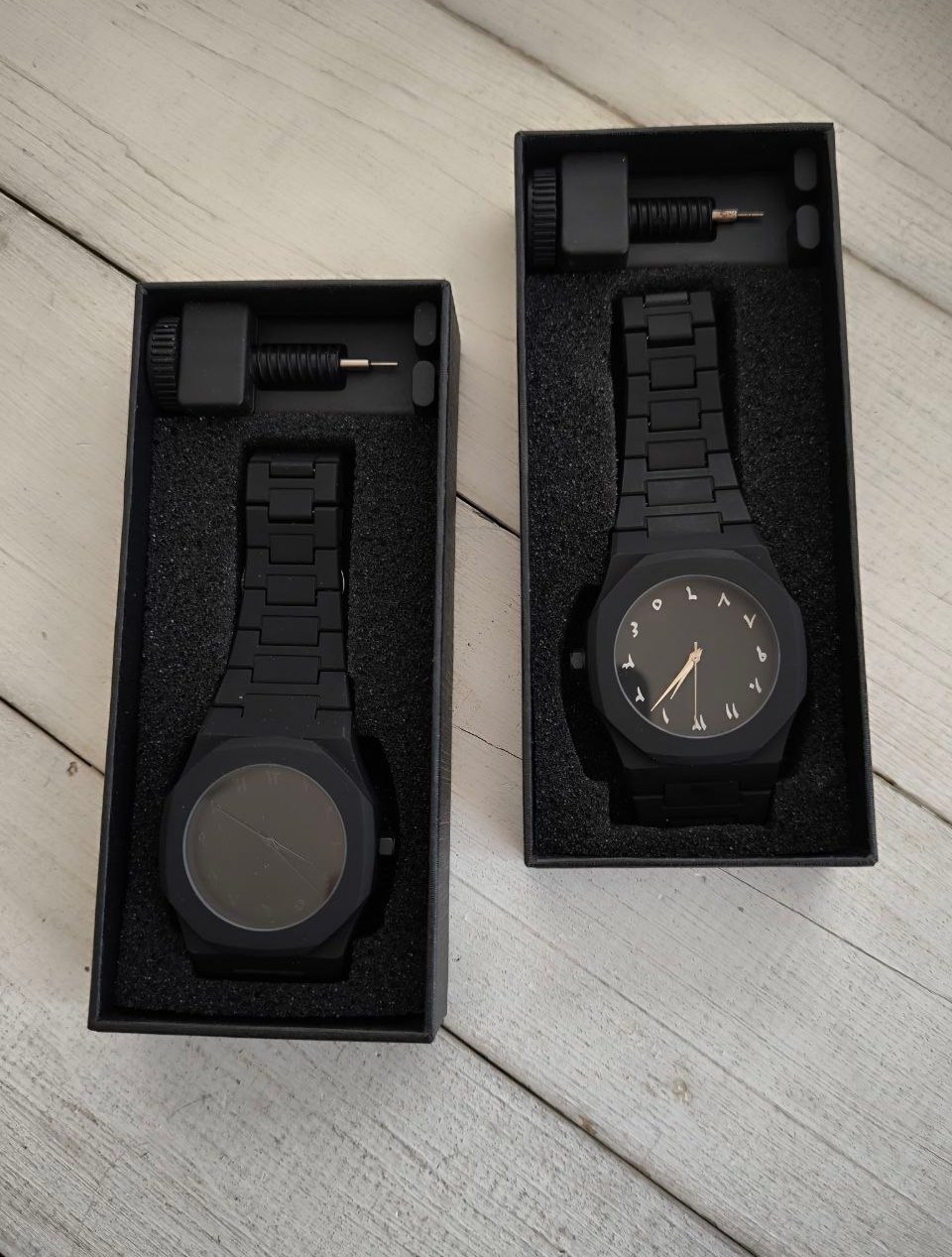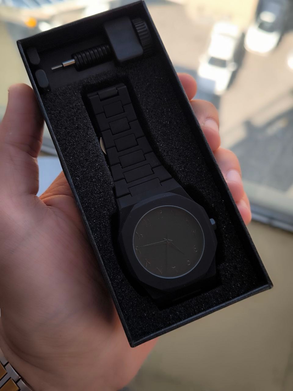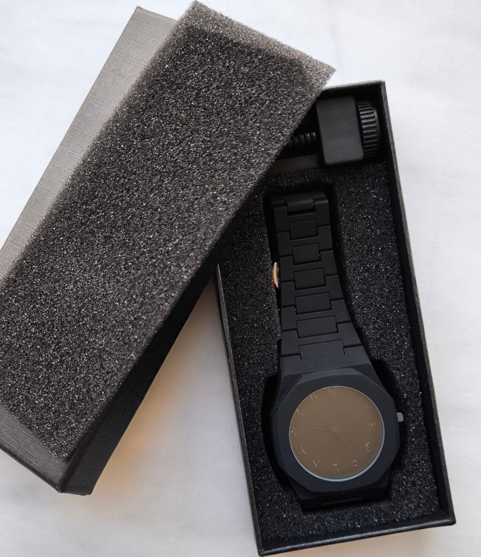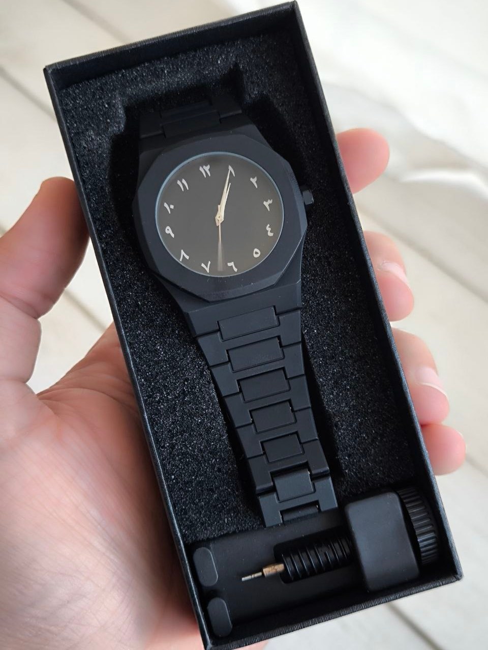ساعت مردانه شیک با طراحی مشکی مات و اعداد عربی. همراه جعبه و پین درار - کد
