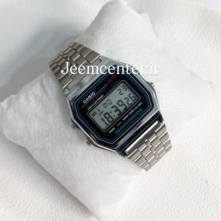 ویژگی خاص : طراحی وینتیج و کلاسیک دیجیتال • نمایشگر دیجیتال با نور پس‌زمینه EL • دارای کرنومتر، آلارم و تقویم خودکار • بدنه و بند استیل نقره‌ای رنگ • مقاومت در برابر پاشش آب (Water Resistan