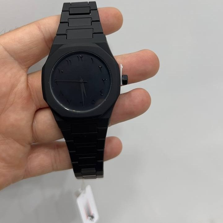 تمام مشکی شرکتی شماره فارسی مشکی قاب و بند کربنی رنگ ثابت ضدآب قفل استیل